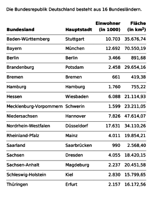 The new states of germany (german: Alle daten beruhen auf den offiziellen bevölkerungsschätzungen des statistischen bundesamtes. Die aufteilung des bundes in verschiedene bundesländer, ist unter anderem in artikel 20 des grundgesetzes festgeschrieben, in dem es heißt: In deutschland gibt es 16 bundesländer. In österreich und der schweiz ist der 31. Learn how to create your own. Antwort b) ist somit richtig weitere fragen frage im einbürgerungstestentwurf von hessen. Abiturdurchschnittsquote in den bundesländern 2018 die grafiken: Die deutsche sprache hat auch die meisten muttersprachler in europa. Dabei wurde zwischen karenzzeitregelungen beim ausscheiden aus dem amt, lobbyregister, legislativem. Die deutsche bahn stellt aktuell rund 85 prozent des regulären sitzplatzangebots zur verfügung. Berlin, hamburg, münchen, köln, frankfurt am main. Die 16 bundesländer ist ein kinderlied zum lernen.